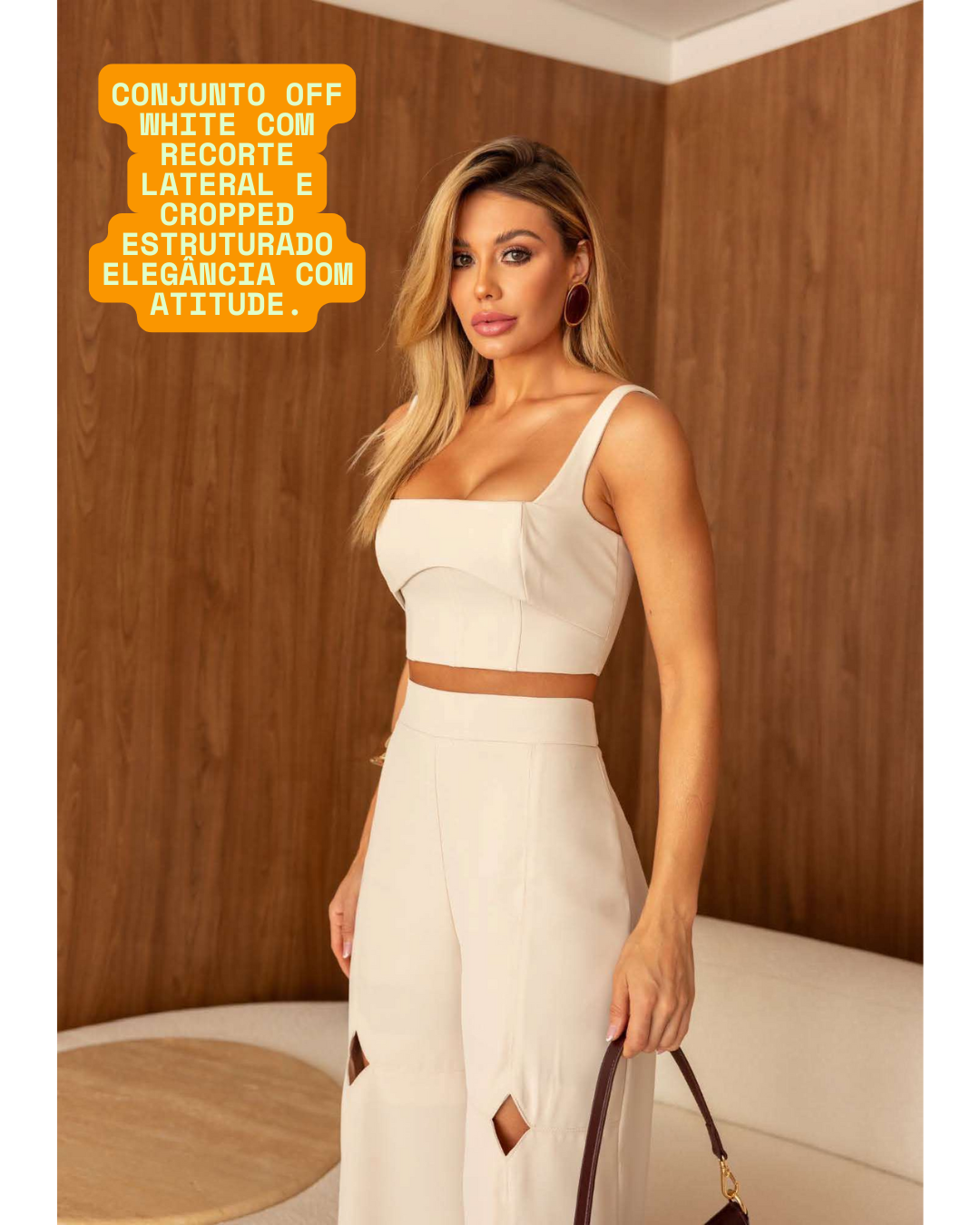 Esse conjunto off white é a combinação perfeita entre sofisticação minimalista e um toque de ousadia. Com modelagem moderna e detalhes que valorizam a silhueta, ele é ideal para ocasiões especiais ou eventos que pedem estilo com personalidade.